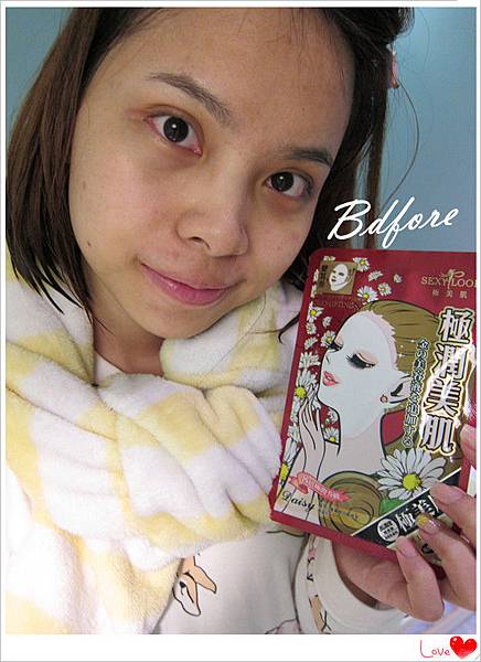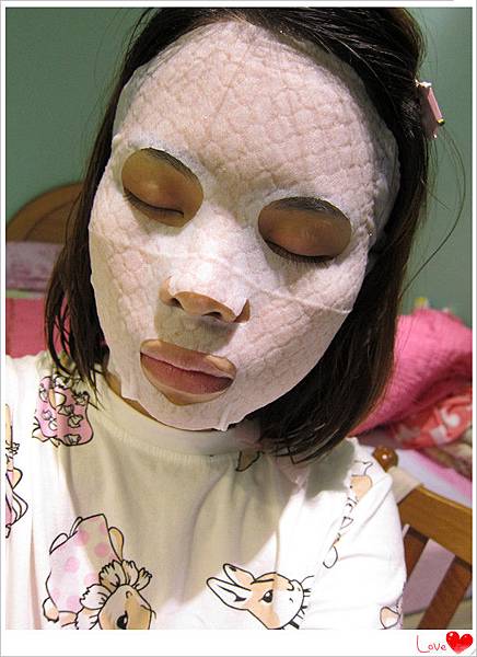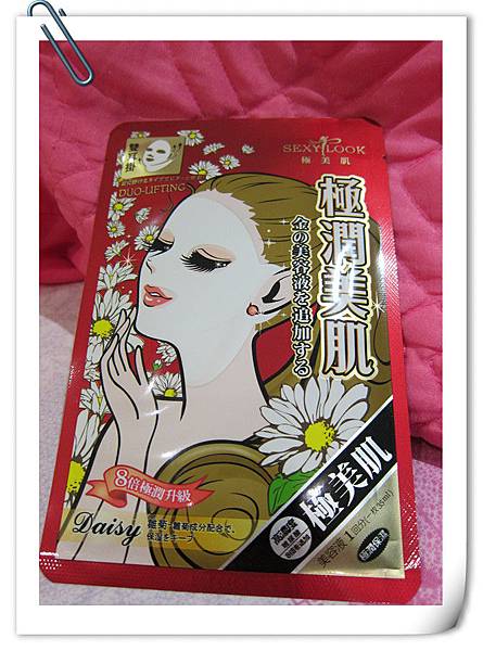 隔天繼續使用紅色包裝的"SEXYLOOK極潤倍效保濕雙耳掛面膜"