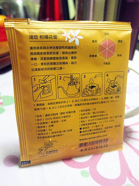 "cama café 鎖香煎焙濾掛式咖啡-柑橘花蜜 一盒(6入)"